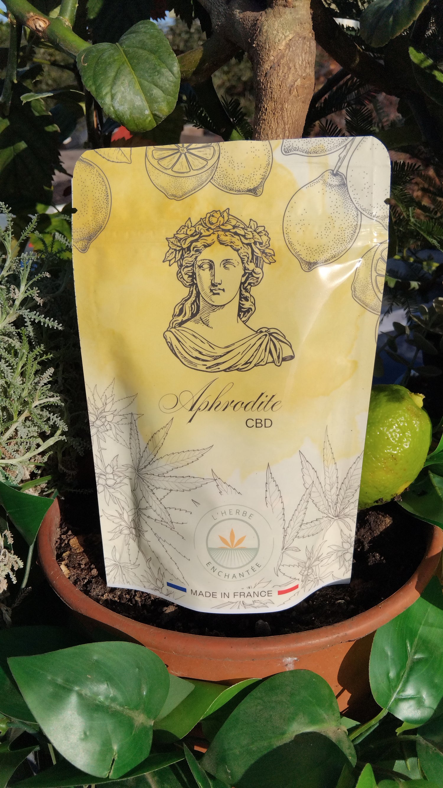 Inspired by the goddess of love and femininity, Aphrodite is an herbal tea created in two versions, with or without CBD, to support women during their menstrual cycles. It aims to soothe pain and discomfort while infusing a gentle and revitalizing energy.